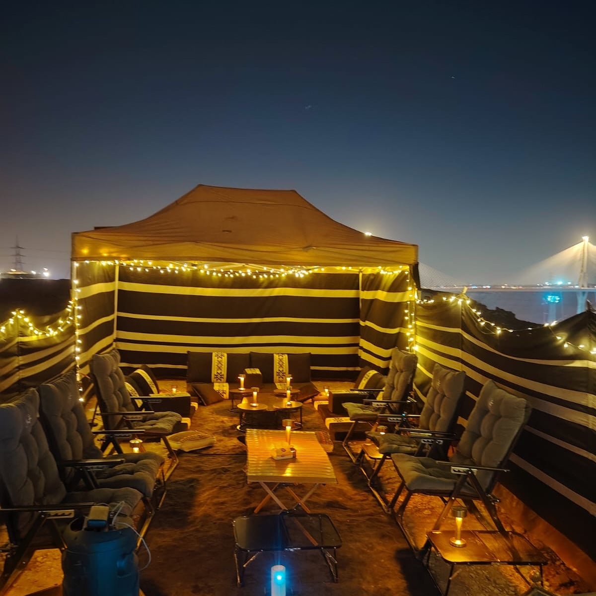خيمة كراسي + جلسة أرضية من محفل® بتصميم متين وأنيق، تجمع بين الراحة والمظهر العصري. مثالية للجلسات الخارجية والمناسبات الخاصة.