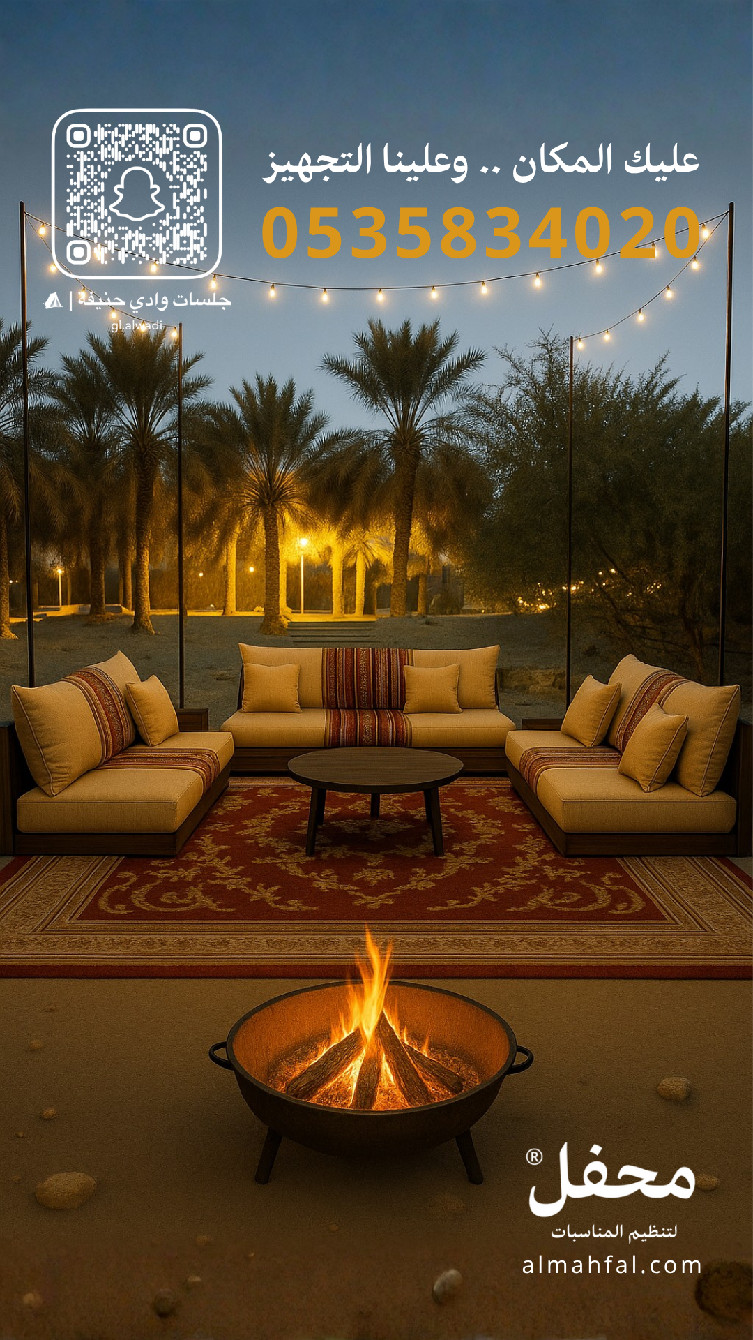 استمتع بأجواء لا تُنسى مع جلسة أرضية شتوية متكاملة من محفل®، مصممة لتجمع بين الطابع التراثي والفخامة العصرية، في موقع مميز بإطلالات مباشرة على وادي حنيفة.